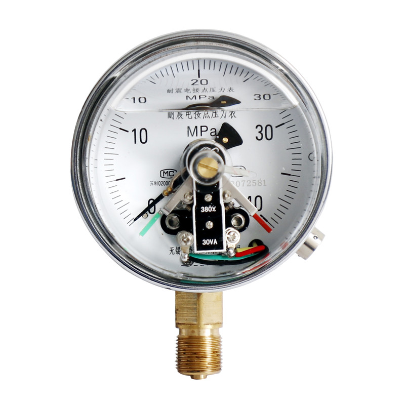 磁助電接點壓力表應(yīng)用于測量控制無爆炸危險的各種流體介質(zhì)的壓力和真空并在壓力達到預(yù)定值時發(fā)出信號,接通控制電路,達到自動控制和報警的目的,儀表設(shè)上、下限二位開關(guān)型接點裝置,在壓力達到設(shè)定值時發(fā)出信號或通斷控制電路,儀表經(jīng)與相應(yīng)的電氣器件(如繼電器及接觸器等)配套使用,即可對被測(控)壓力或者真空系統(tǒng)實現(xiàn)自動控制和發(fā)信(報警)的目的。廣泛應(yīng)用于石油、化工、冶金、食品等工業(yè)部門壓力和真空測量和控制。