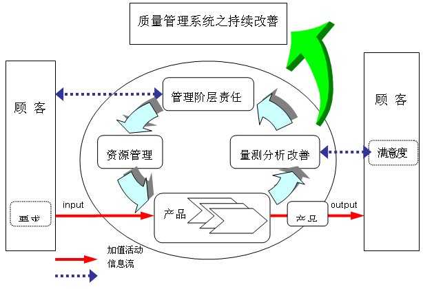 本模式要求定期審查本公司質(zhì)量管理系統(tǒng),必要時得修訂質(zhì)量政策與目標(biāo)。質(zhì)量管理系統(tǒng)之運(yùn)作模式如圖所示。